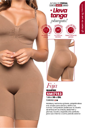 Body Faja Seamfree SMI7153 con Tirantes Ajustables y Media Pierna | Moldeo de Espalda Alta y Compresión Estratégica