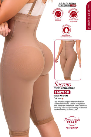 La faja SMI7108 está diseñada con tecnología Ultrainvisible y compresión estratégica que define cintura, abdomen y muslos, mientras su diseño strapless sin tirantes permite usarla con diferentes estilos de ropa. Su cierre frontal facilita la colocación y el sistema perineal aporta practicidad para el día a día.