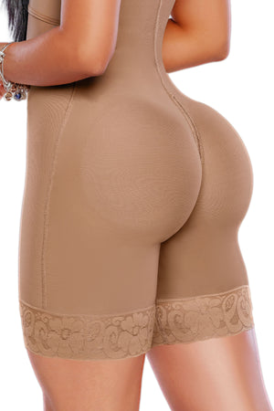 Faja media pierna con estructura ergonómica que incluye brasier integrado. Su diseño sin costuras garantiza compresión y soporte continuo desde el busto hasta las piernas, con ajuste gradual y sin irritaciones. Ofrece un moldeo completo con una sola prenda.