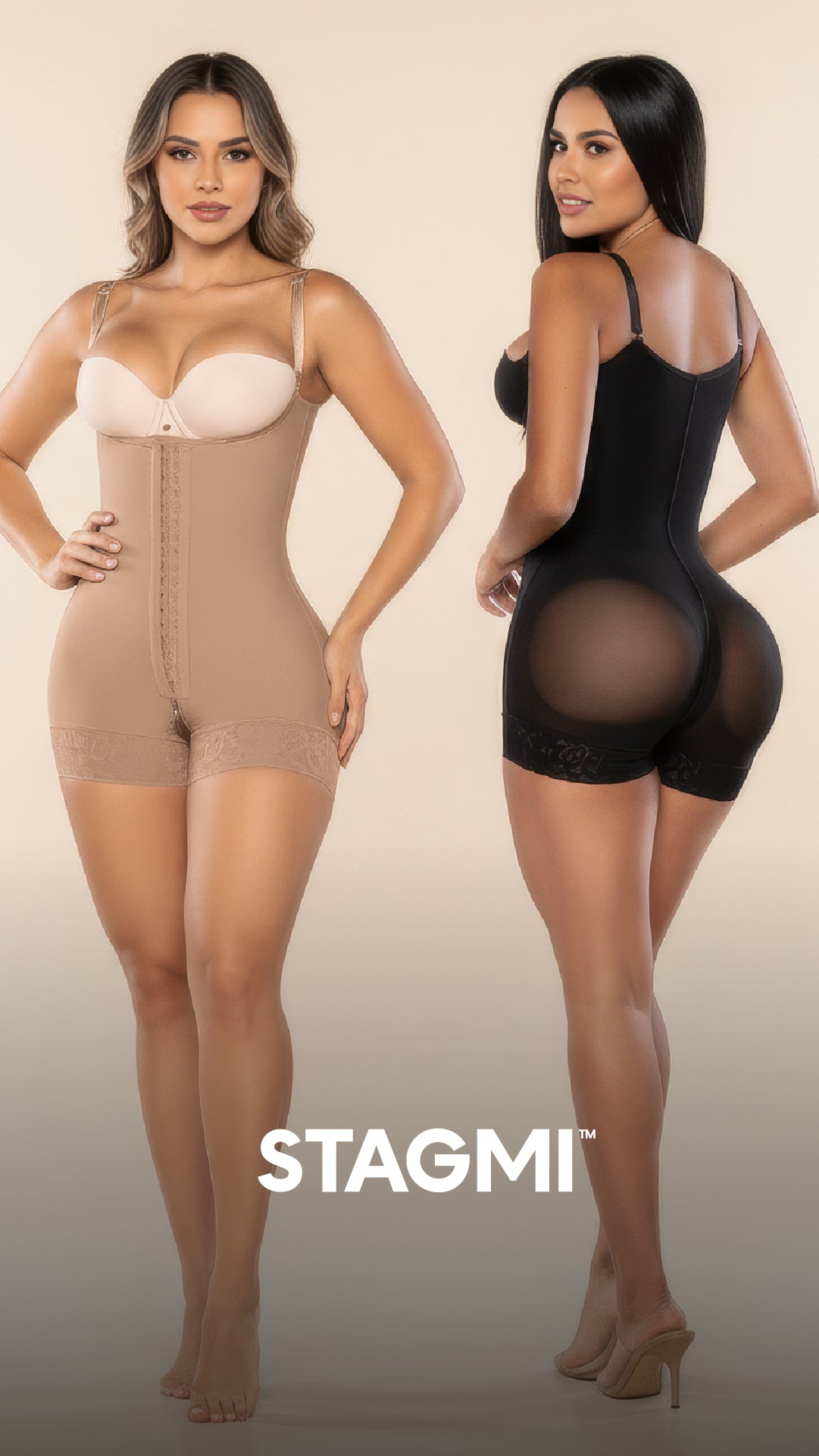 Diseño y estructura Faja corta con diseño progresivo de compresión. Tiene 3 hileras de broches que permiten ajustar la prenda a tu ritmo. El sostén removible brinda soporte adicional y versatilidad. Cuenta con cierre perineal y encaje siliconado en las piernas que evita que se enrolle. Disponible en tallas desde XS hasta 5XL, adaptándose a distintos tipos de cuerpo.